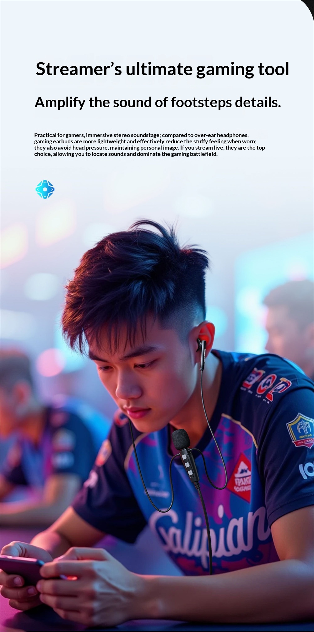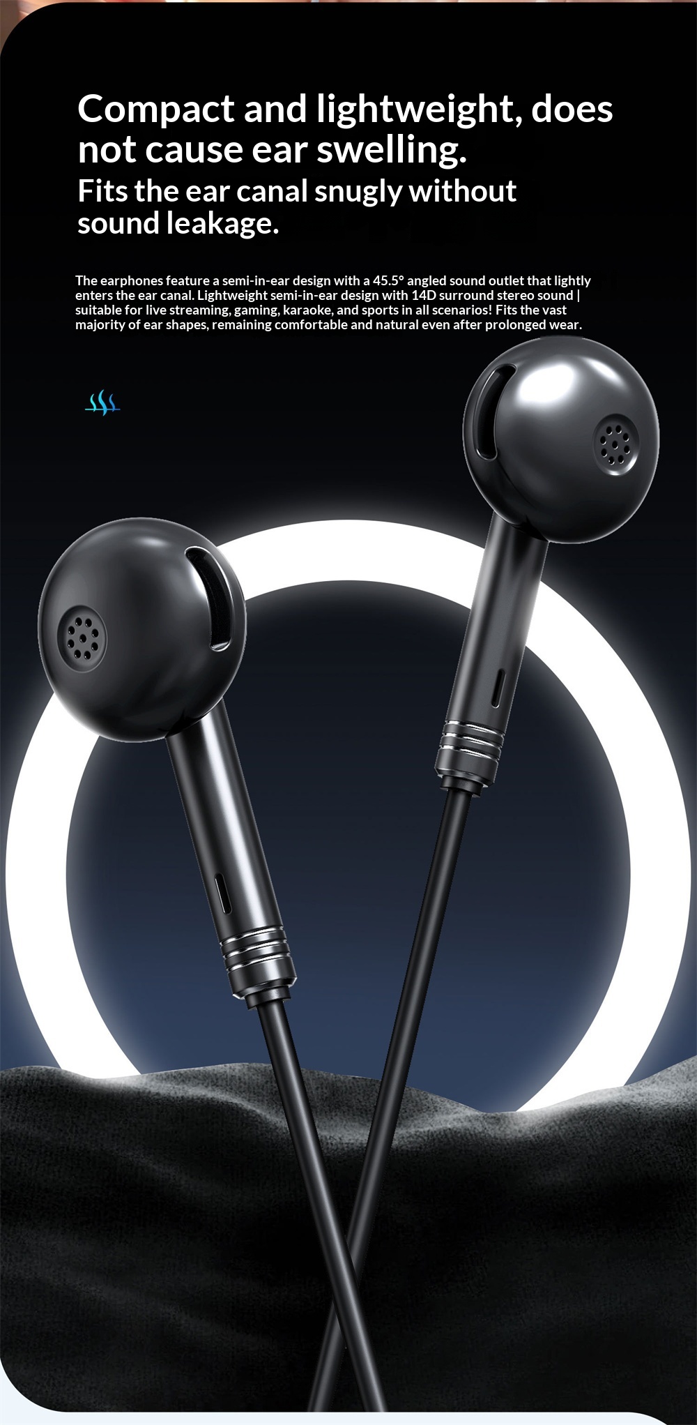 6. Comfort-Oriented Design: Lightweight semi-in-ear fit at a 45.5° angle for extended usage without discomfort.