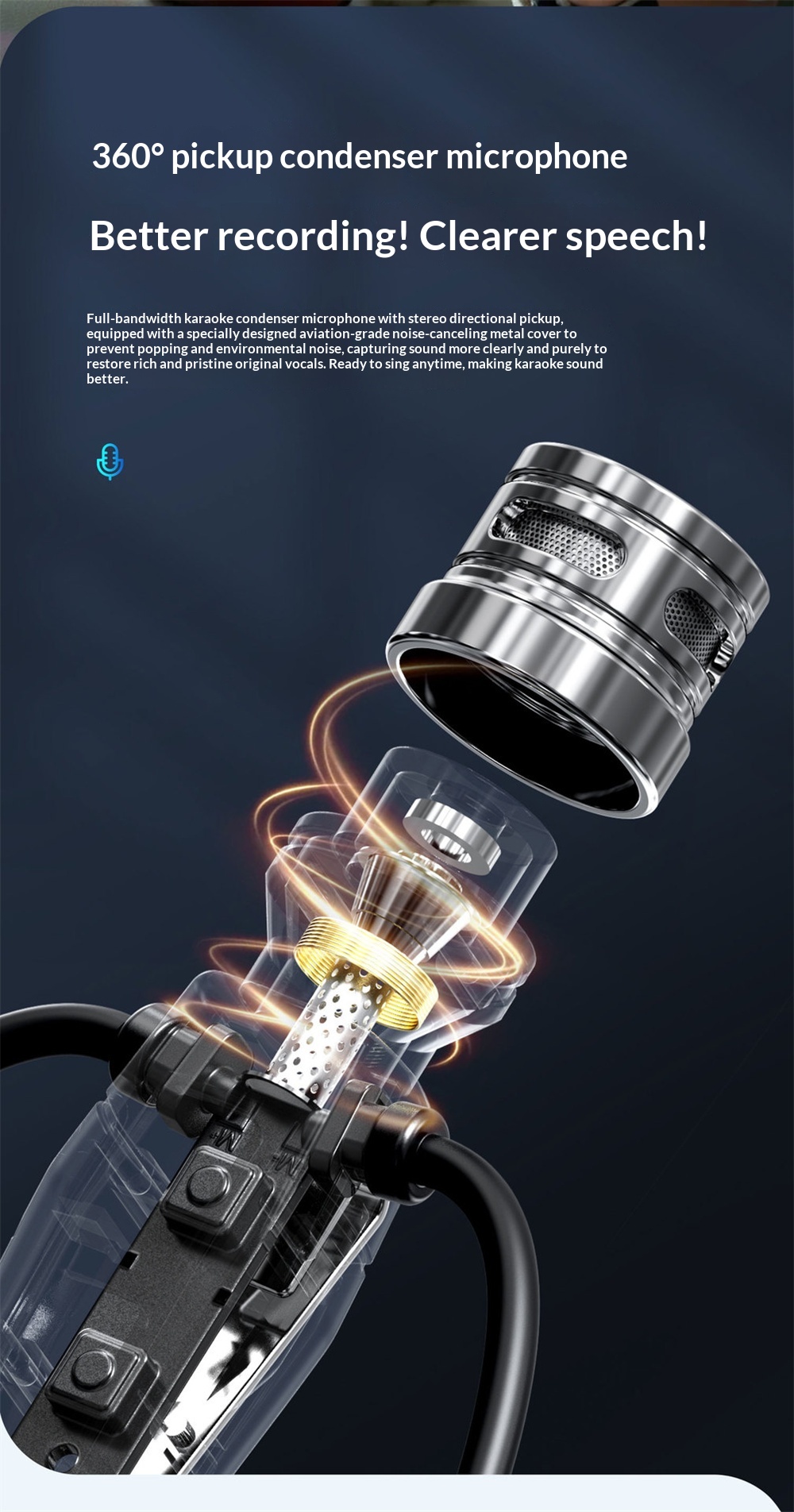 3. 360° Noise-Canceling Microphone: High-sensitivity pickup with aircraft-grade noise reduction ensures clear audio quality in live broadcasts or calls.