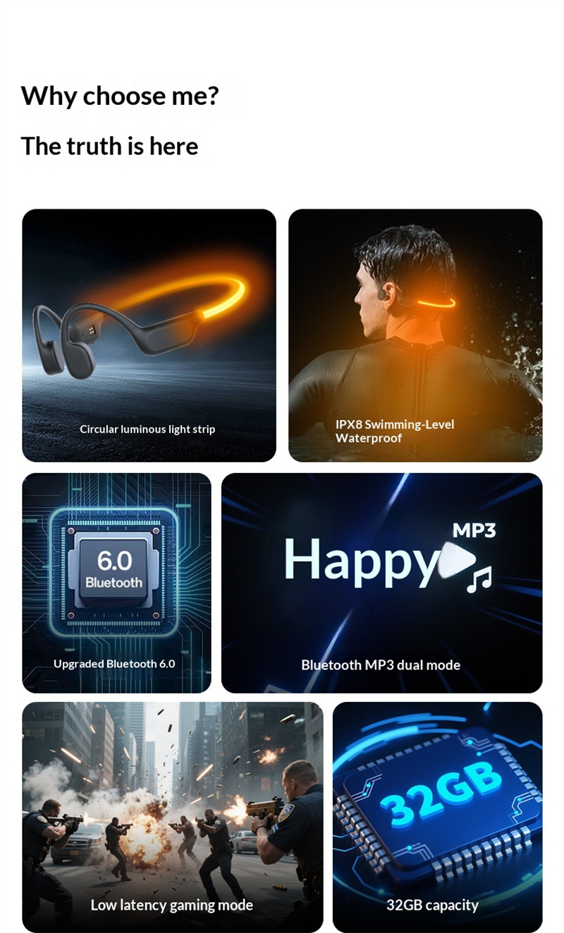 Be the first to review “X500 Bone Conduction Earphone Bluetooth V6.0 Headphones LED Night Light 32G Memory MP3 Dual Mode IPX8 Waterproof Low Latency Gaming Mode Music Sports Headphone”