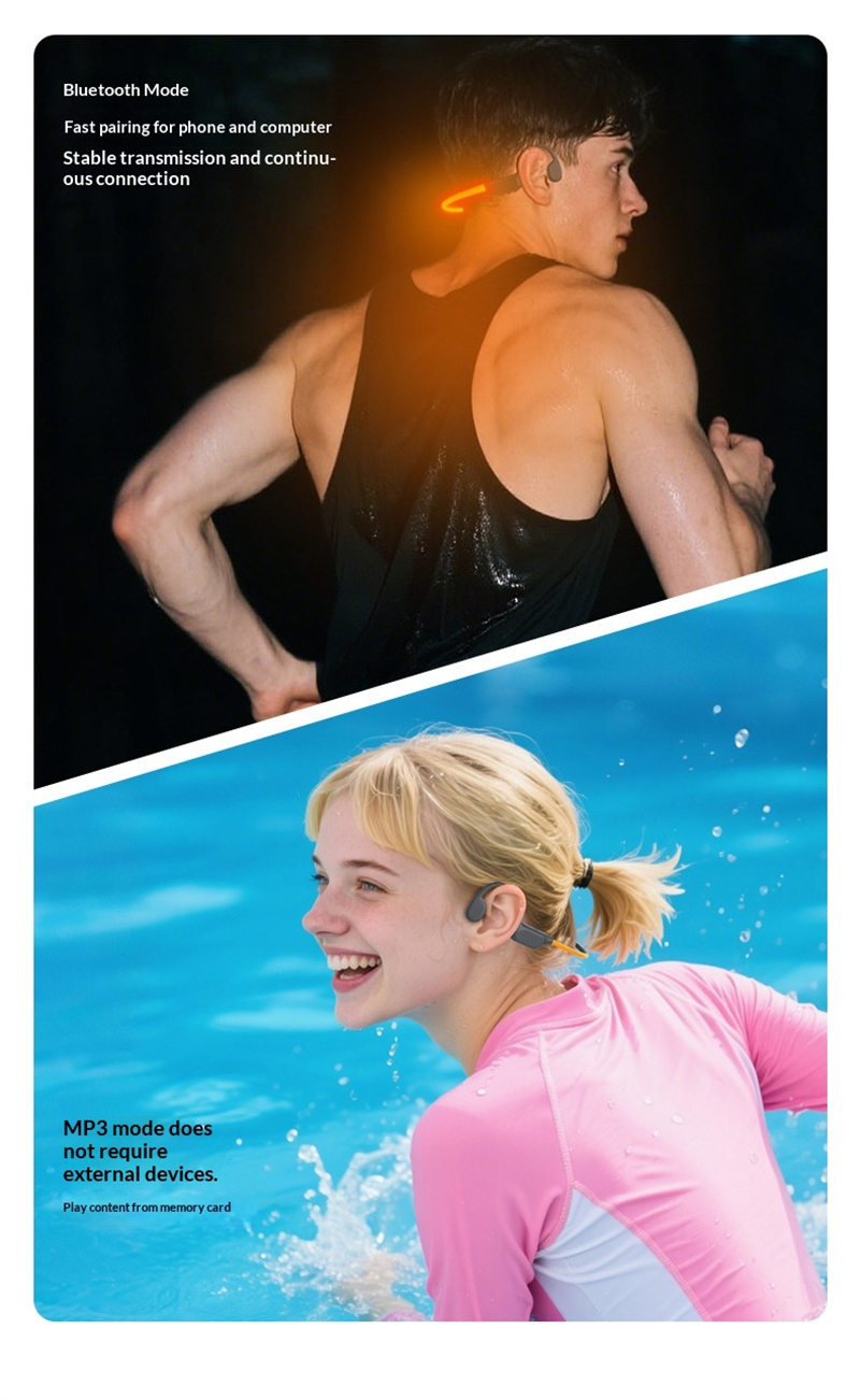 X500 Bone Conduction Earphone Bluetooth V6.0 Headphones LED Night Light 32G Memory MP3 Dual Mode IPX8 Waterproof Low Latency Gaming Mode Music Sports Headphone
